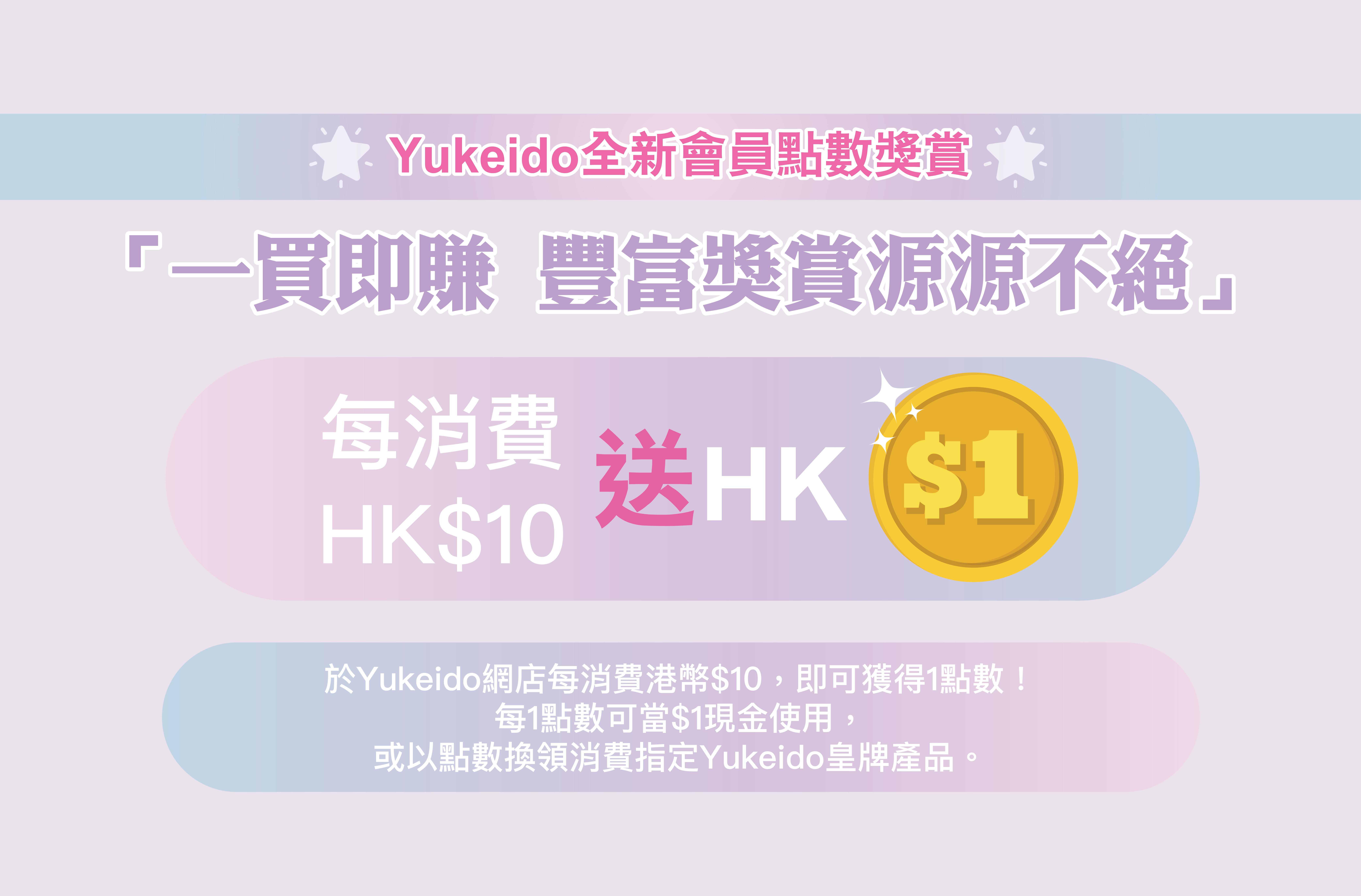 用Yukeido點數兌換精選皇牌產品又得,於結賬時候以每1點數扣減HK$1訂單消費都得,輕鬆易用非常free!
